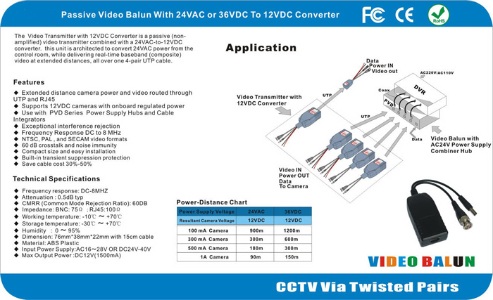 Passive Video Balun with AC24V to DC12V Converter